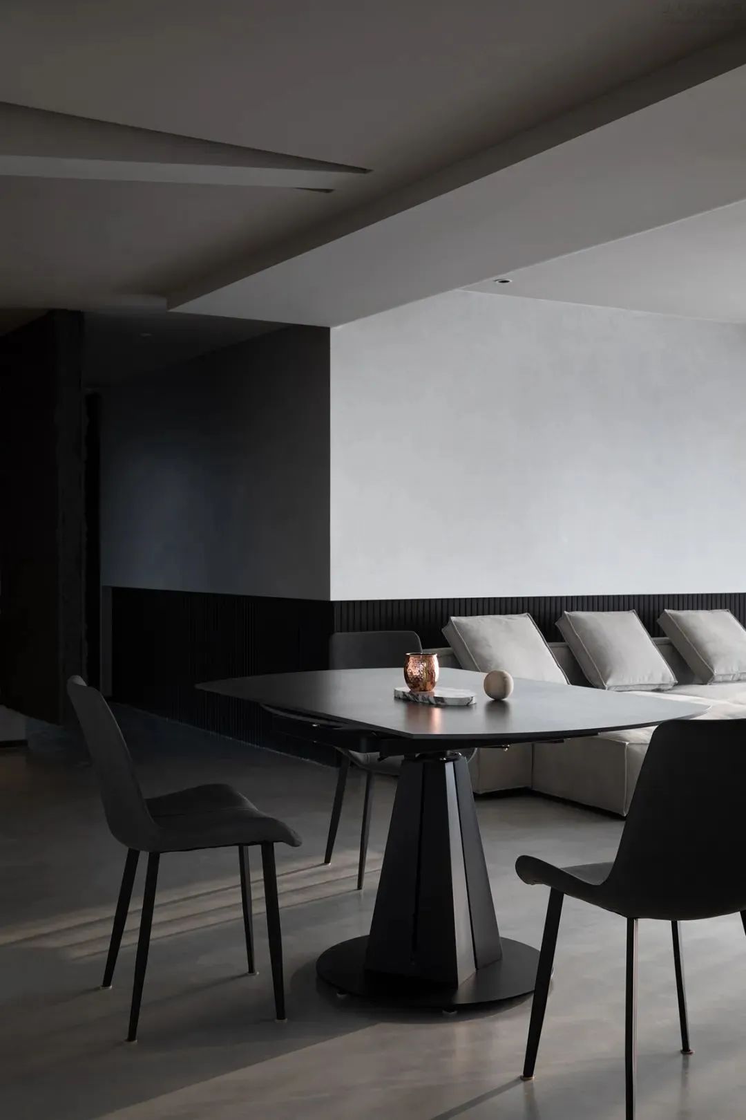內(nèi)斂的高級(jí)灰到木質(zhì)茶幾和金屬座椅的過(guò)渡,從靜謐的水泥墻到符合人體工學(xué)的科技座椅,這樣新奇的搭配往往能夠產(chǎn)生奇妙的效果。