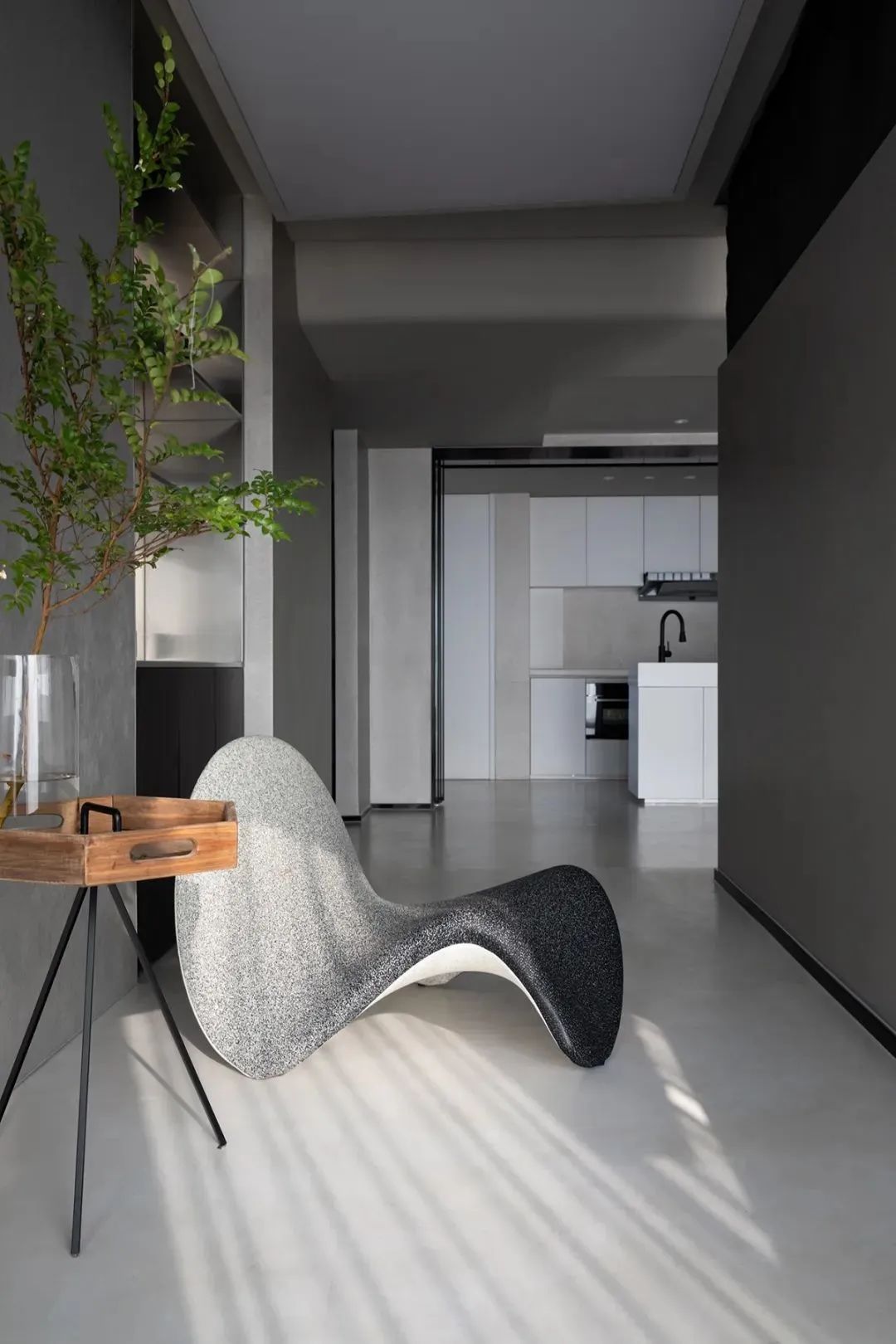 The advantage of high floor also obtains better lighting condition, placed a geometric lounge chair full of design sense in the best sunshine place, can let the resident bathe in the sunshine here.