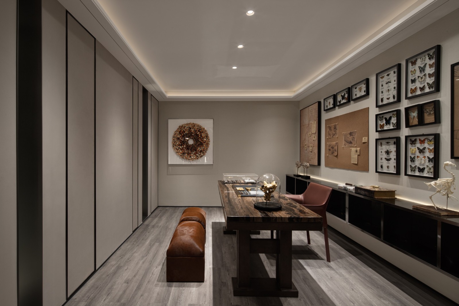 設(shè)計(jì)團(tuán)隊(duì)以精致的都市現(xiàn)代氣息詮釋空間,通過對(duì)空間質(zhì)感、色澤和光影的體察,這些細(xì)節(jié)的融匯為空間注入了靈動(dòng)的輕盈感,激發(fā)了空間雅奢而恬靜、溫和而又典雅的藝術(shù)氛圍。