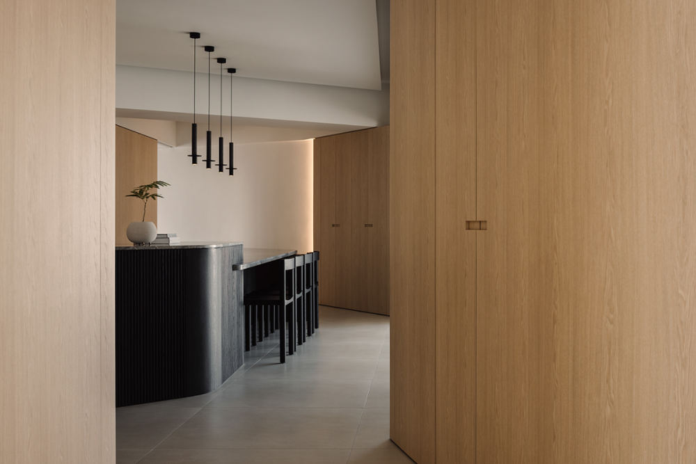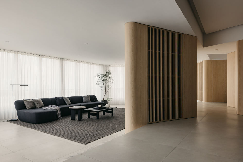 天然橡木飾面加上圓角角在這個(gè)空間內(nèi)帶來了一種更柔和的方法。我們巧妙地將壁燈放在入口附近,以便在回家時(shí)受到熱烈歡迎。環(huán)繞起居室的透明窗簾在該區(qū)域散發(fā)出柔和的自然光,讓人可以在這樣的寧靜中居住。這是通過移除現(xiàn)有的研究區(qū)域,讓充足的自然光涌入該空間來實(shí)現(xiàn)的。