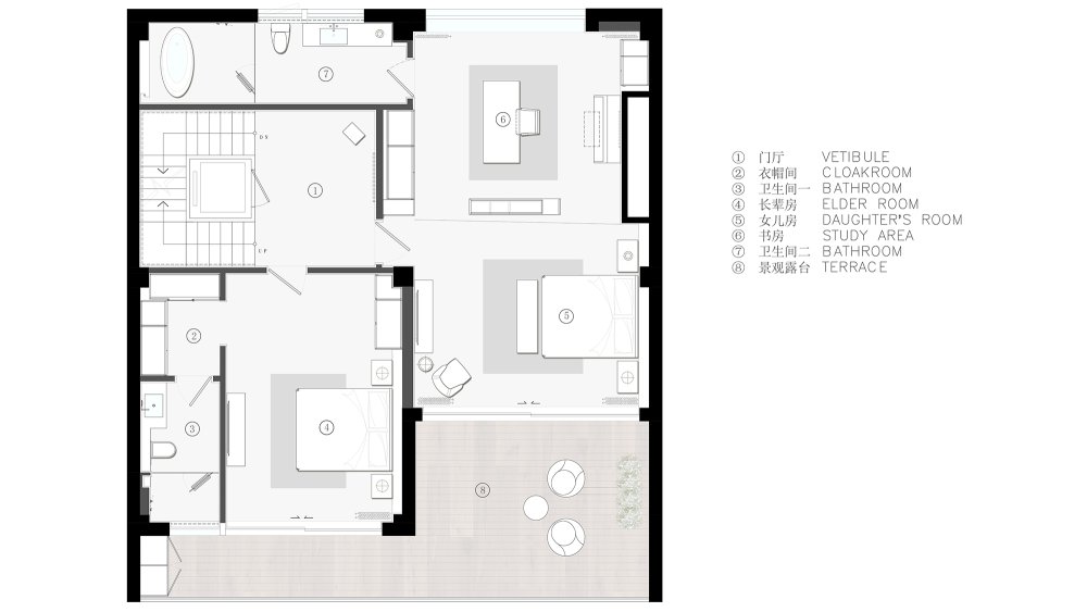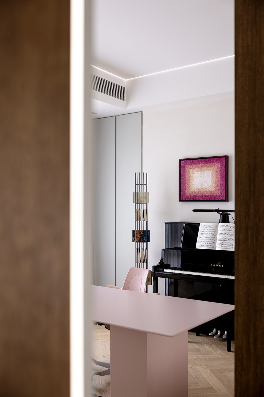 二層是女兒的套間與父母房。業(yè)主說,自從女兒搬進(jìn)新家之后,可以一整天都在自己的小天地彈琴、讀書,享受并安排好自己的生活。 居所是身心歸屬的特定場所,在成長的歲月流光中,投射下家的符號,未來求學(xué)的日子里,想起她的這方小天地,定然是滿滿的依戀與幸福的記憶。家永遠(yuǎn)是每一個(gè)孩子背后的依靠。