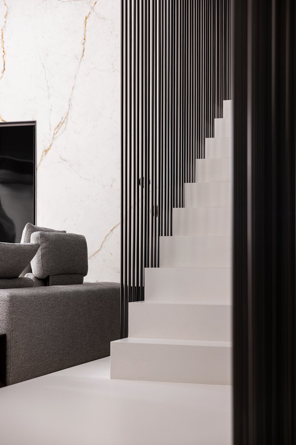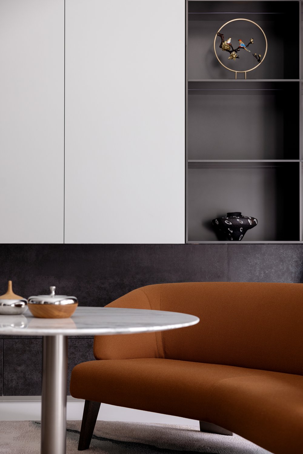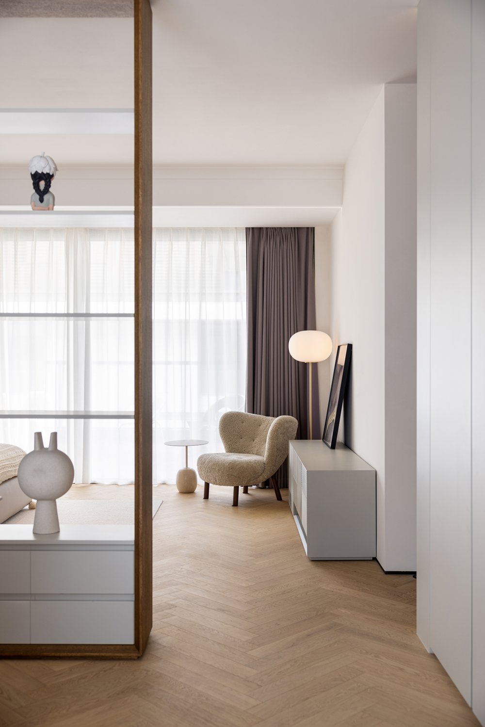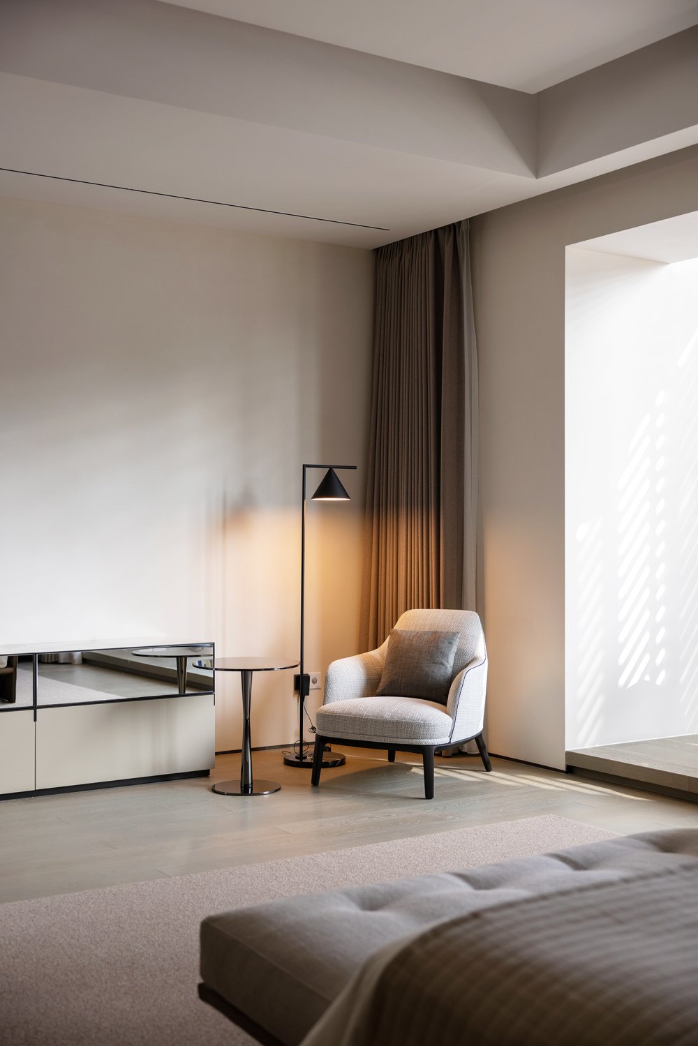 地面大面積采用白色的巖板,當(dāng)陽光灑下,如同初春的白雪一樣給人純凈又溫暖的氣息??臻g氛圍平和、溫潤、細(xì)膩、柔和的色調(diào),加上Giorgetti、Minotti、Occhio等品牌的融入,讓空間氣質(zhì)如蘭優(yōu)雅靜謐;也讓居住者汲取寧靜與養(yǎng)分,置身其中輕松自如。 設(shè)計(jì)的價(jià)值不局限于看得到的形與色,更體現(xiàn)在看不到的情感交流中。家是居所,更是內(nèi)心情感的寄托與表露。每一種生活狀態(tài)和體驗(yàn),都在細(xì)碎的微光中打動(dòng)人心,成為記憶中深刻的光。