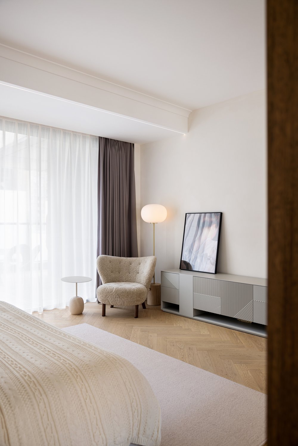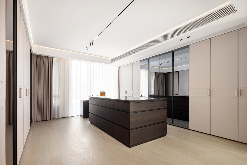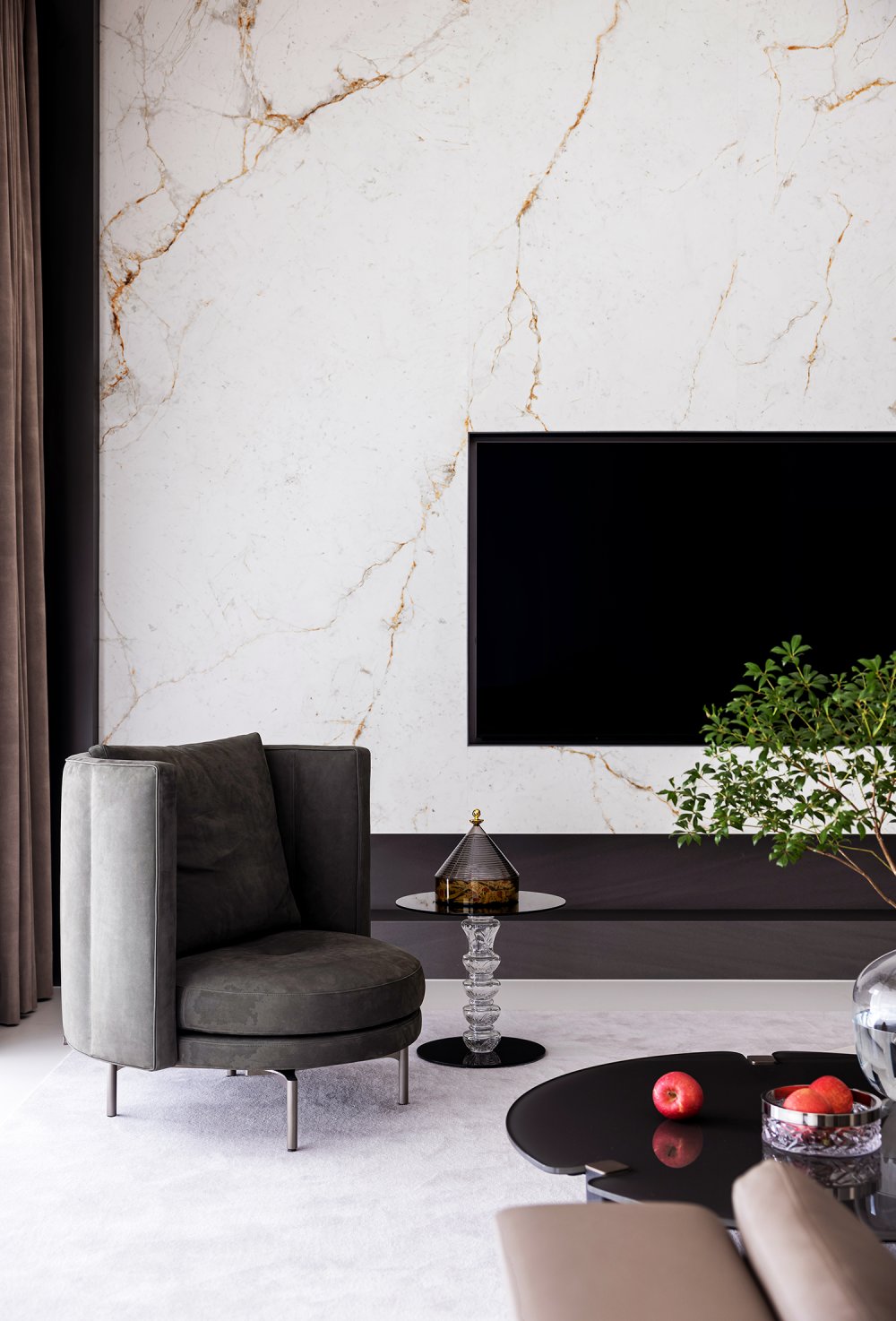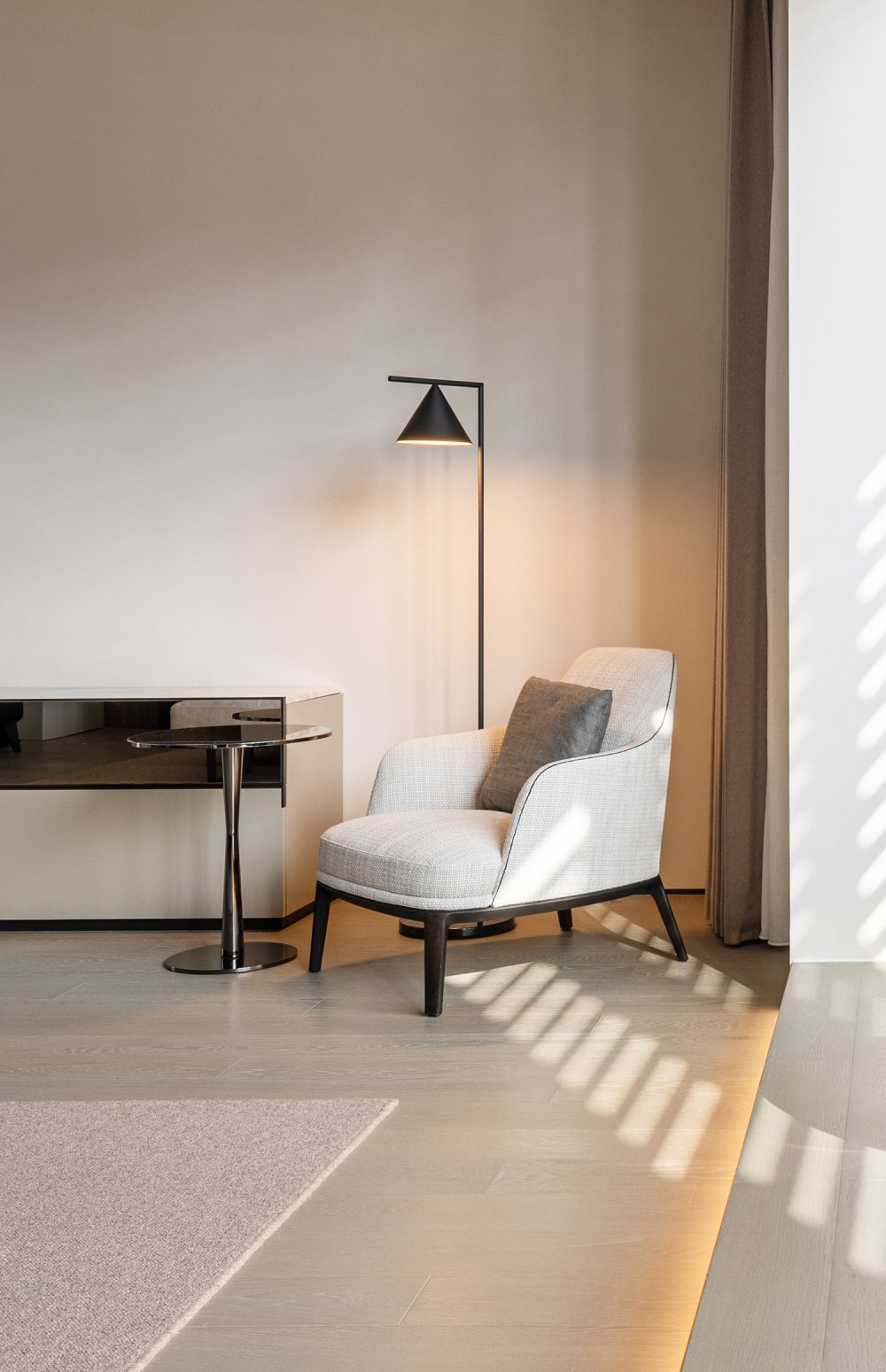 地面大面積采用白色的巖板,當(dāng)陽光灑下,如同初春的白雪一樣給人純凈又溫暖的氣息??臻g氛圍平和、溫潤、細(xì)膩、柔和的色調(diào),加上Giorgetti、Minotti、Occhio等品牌的融入,讓空間氣質(zhì)如蘭優(yōu)雅靜謐;也讓居住者汲取寧靜與養(yǎng)分,置身其中輕松自如。 設(shè)計(jì)的價(jià)值不局限于看得到的形與色,更體現(xiàn)在看不到的情感交流中。家是居所,更是內(nèi)心情感的寄托與表露。每一種生活狀態(tài)和體驗(yàn),都在細(xì)碎的微光中打動(dòng)人心,成為記憶中深刻的光。
