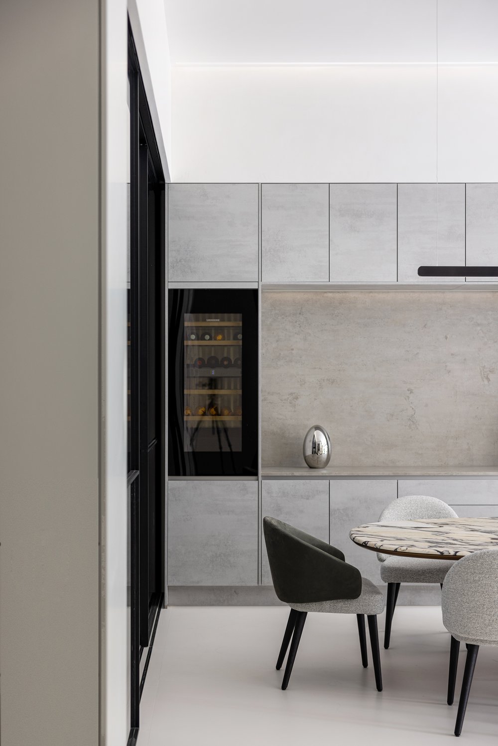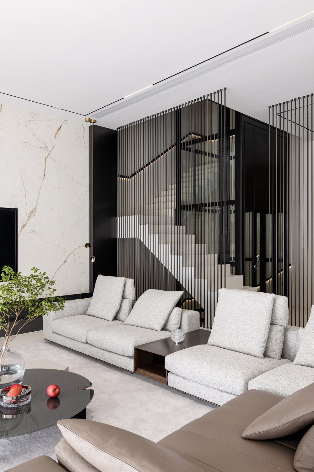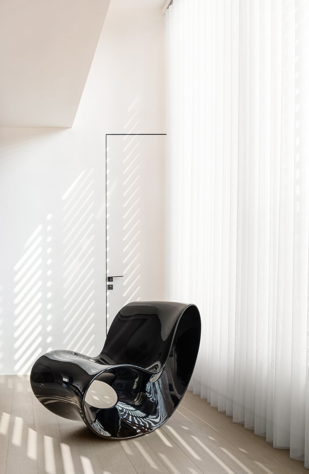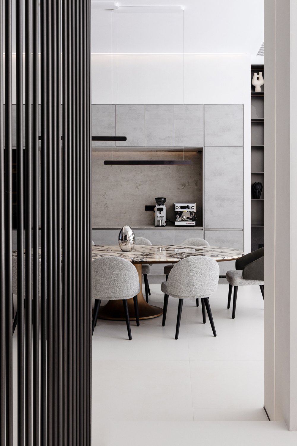 地面大面積采用白色的巖板,當(dāng)陽光灑下,如同初春的白雪一樣給人純凈又溫暖的氣息??臻g氛圍平和、溫潤、細(xì)膩、柔和的色調(diào),加上Giorgetti、Minotti、Occhio等品牌的融入,讓空間氣質(zhì)如蘭優(yōu)雅靜謐;也讓居住者汲取寧靜與養(yǎng)分,置身其中輕松自如。 設(shè)計(jì)的價(jià)值不局限于看得到的形與色,更體現(xiàn)在看不到的情感交流中。家是居所,更是內(nèi)心情感的寄托與表露。每一種生活狀態(tài)和體驗(yàn),都在細(xì)碎的微光中打動(dòng)人心,成為記憶中深刻的光。