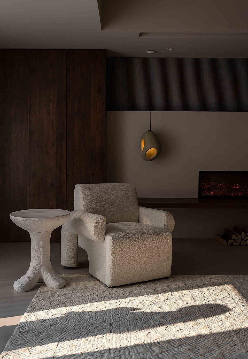本案名字叫《初居》,意為初始之居所,本案想要呈現(xiàn)的理念是,人對于居所最初始,最簡單的向往與期望,拋去浮華,回歸初始。在社會的現(xiàn)代進程中,能夠在初居空間中放下疲憊、煩躁、不安。撫慰內(nèi)心,感受生活最真實,最簡單的樣子。小云對于生活有著浪漫主義的理解,所以我們在設(shè)計中,做了很多氛圍的表現(xiàn)(例如:客廳的電子壁爐、花園亭子的酒精壁爐以及飄逸的窗紗等等元素來烘托氛圍感),她喜歡做手磨咖啡,看書,養(yǎng)花,烘焙。我們將這些愛好結(jié)合以后,最終呈現(xiàn)了《初居》的樣子。