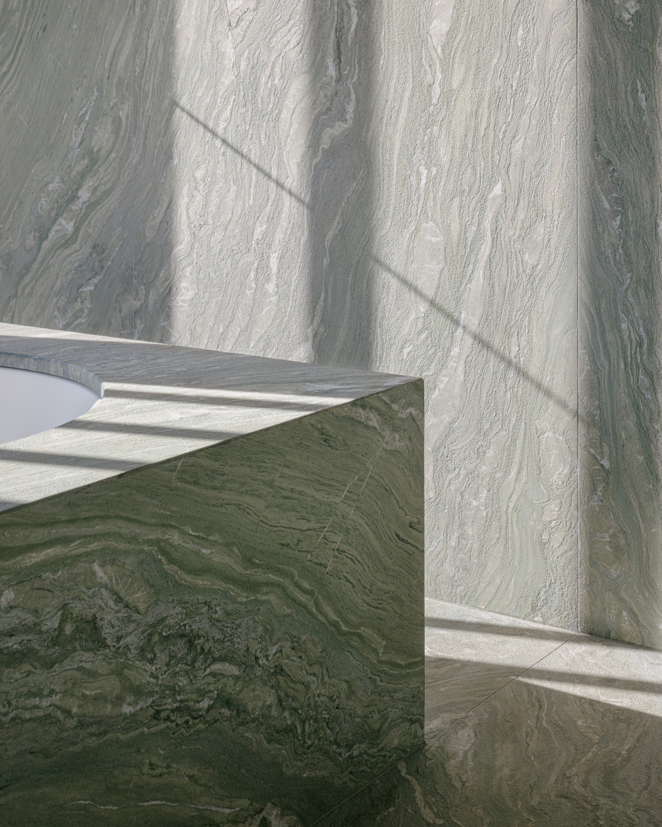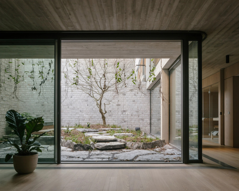 - 入口區(qū)在公共領(lǐng)域和私人領(lǐng)域之間形成了微妙的分離,作為樹干。 室內(nèi)主干道經(jīng)過廚房和客廳進(jìn)入花園房間。 通往另一層夜廳和工作室的路徑偏離主軸線,保持私密性。 地面層和其他樓層由位于花園房間的獨(dú)立螺旋樓梯相連。 每次房間朝向不同時,光線的入射和外部視野都會發(fā)生變化。 以一種意想不到的方式,這在帶有日式花園的地下室露臺上表現(xiàn)得很明顯。 與設(shè)有水療中心和酒吧的大花園相對應(yīng)的小型花園。 房子的內(nèi)部裝飾采用天然材料,包括橡木、石灰石和室內(nèi)裝潢。