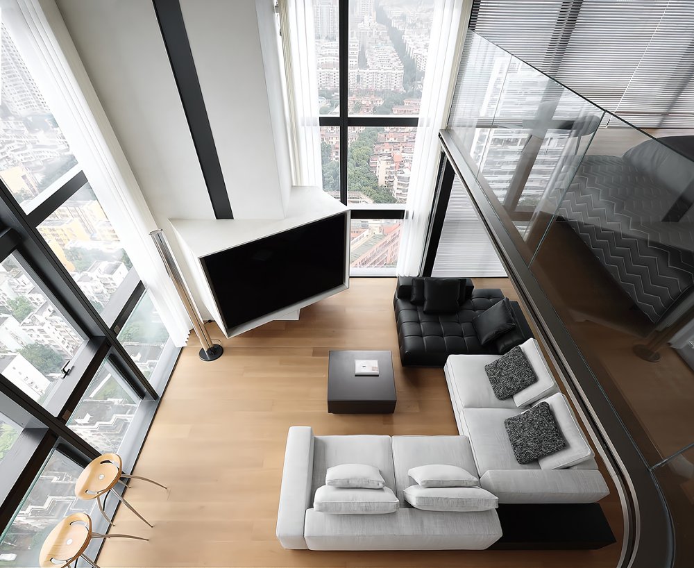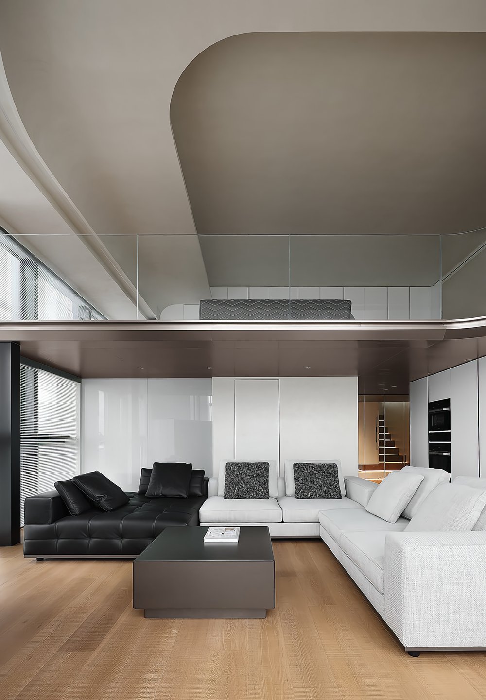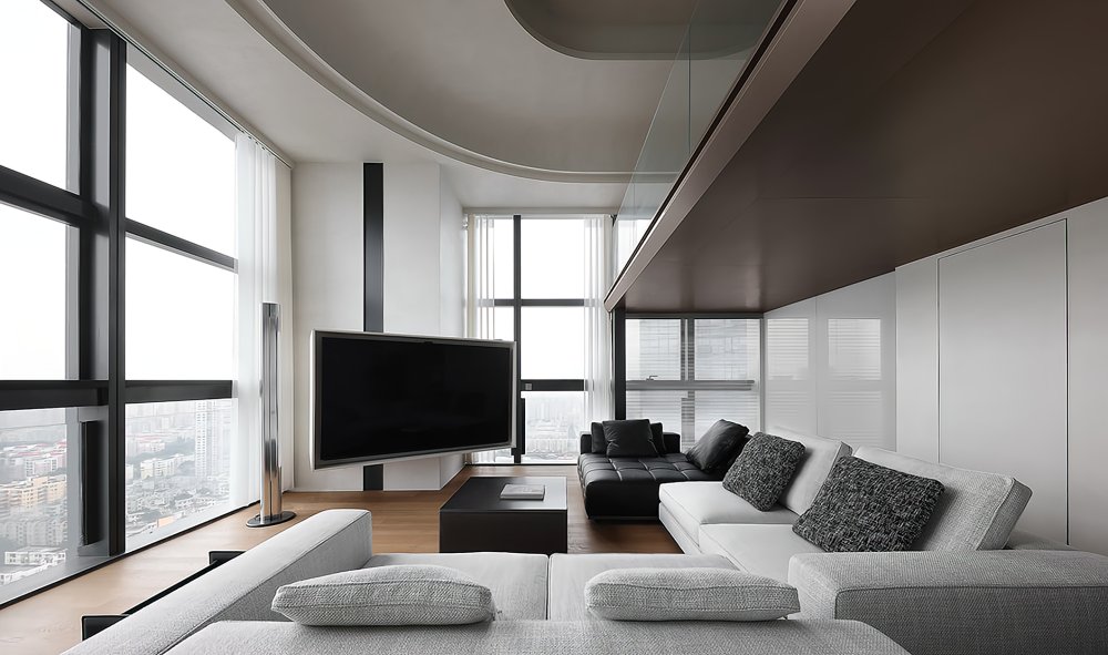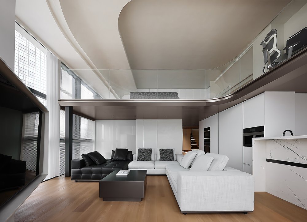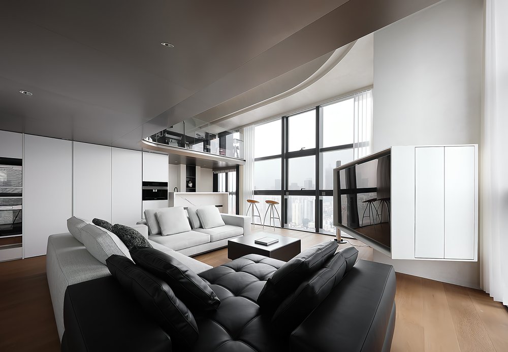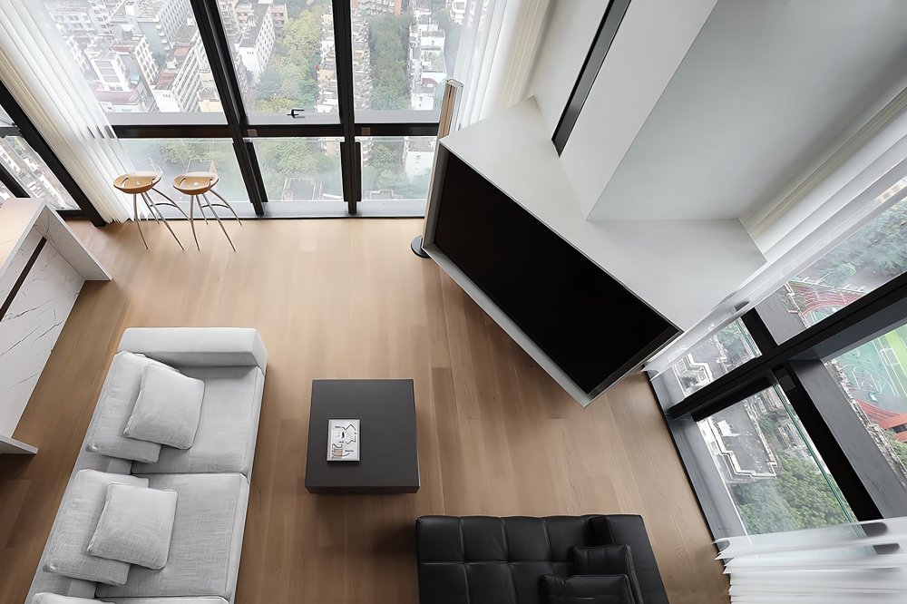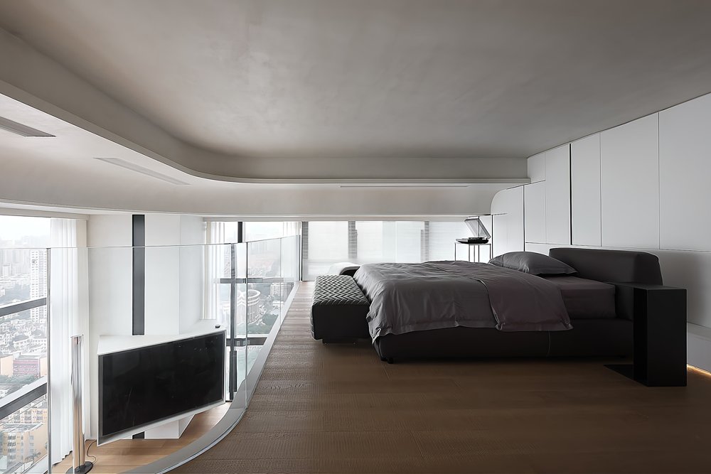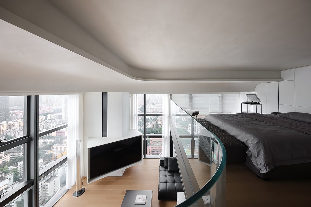 二樓LOFT的留給臥室功能極簡的黑白灰線條完美融合于極致的空間設計中呈現(xiàn)了一幅靈動唯美的空間美窗外的景觀一覽無遺讓人心曠神怡
