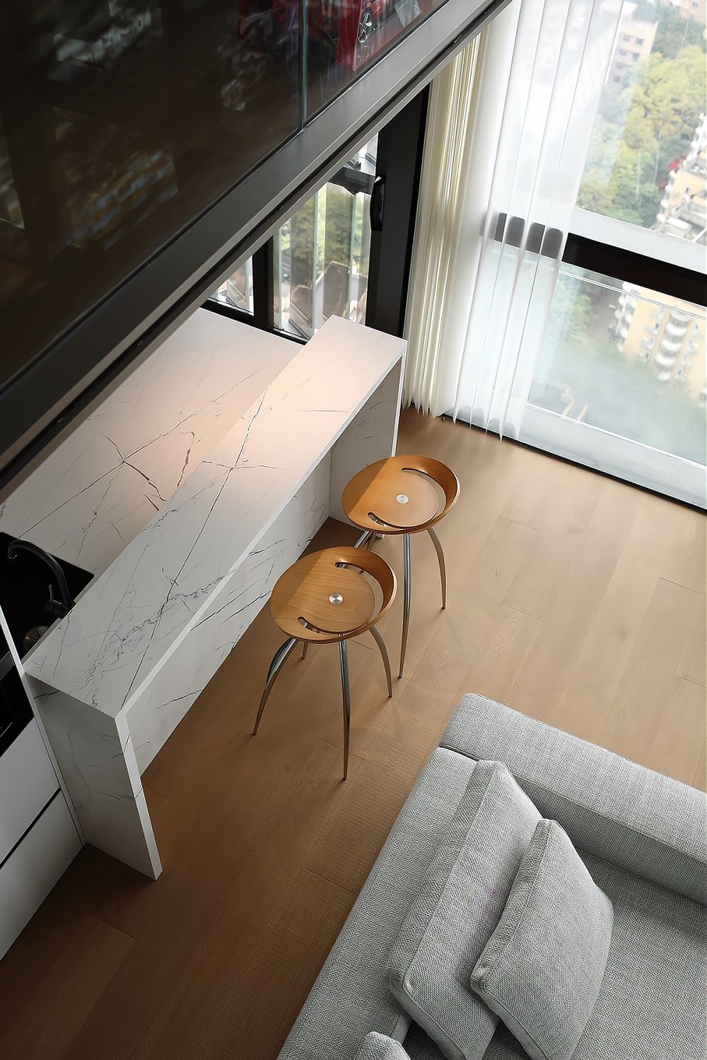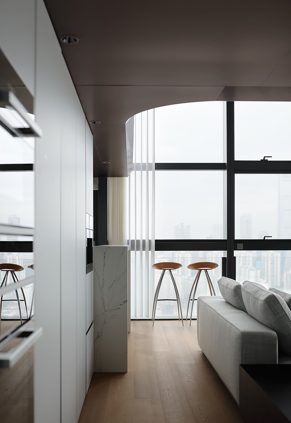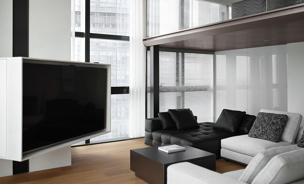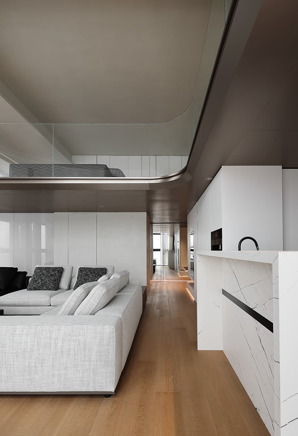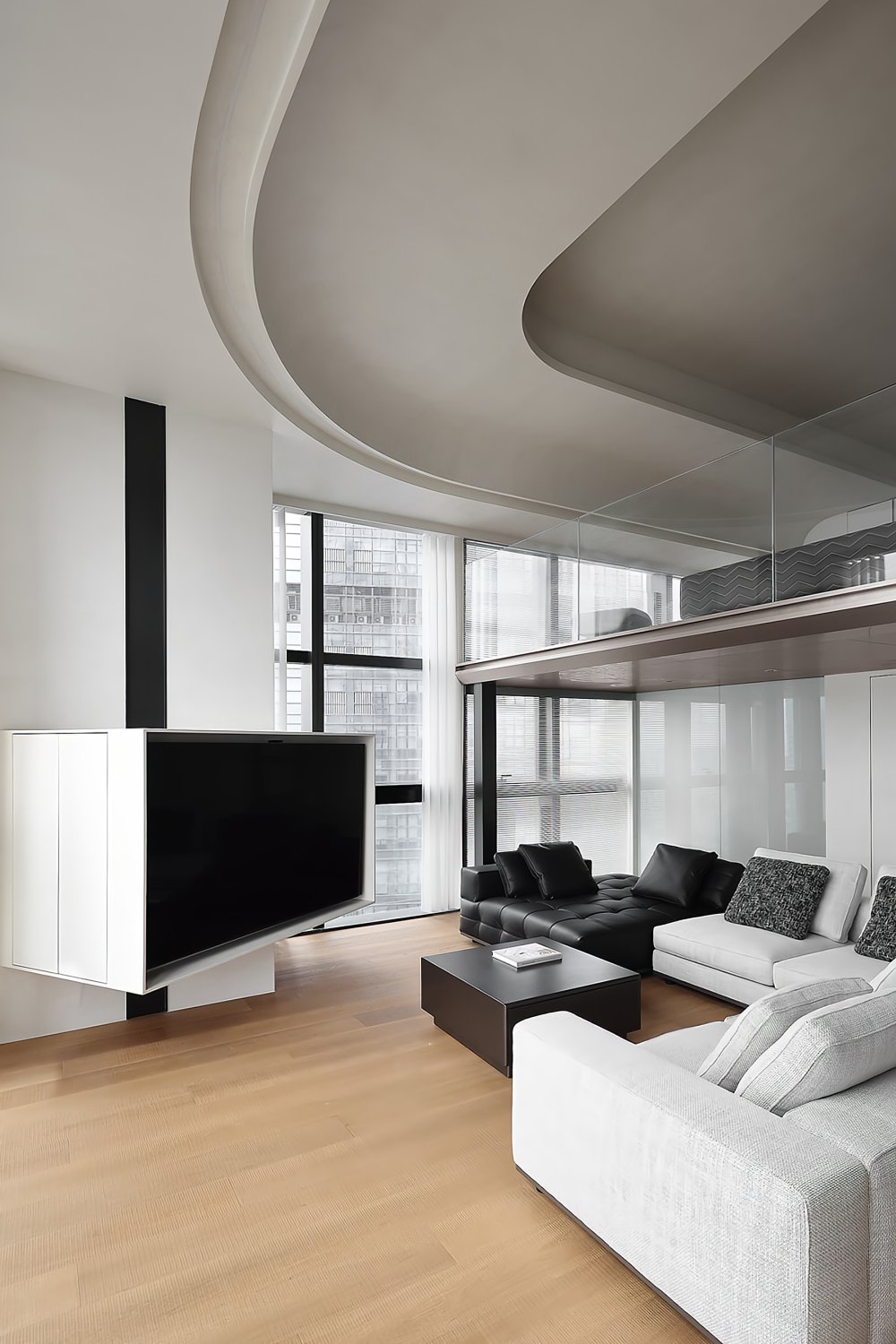 二樓LOFT的留給臥室功能極簡的黑白灰線條完美融合于極致的空間設計中呈現(xiàn)了一幅靈動唯美的空間美窗外的景觀一覽無遺讓人心曠神怡