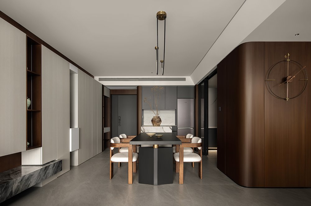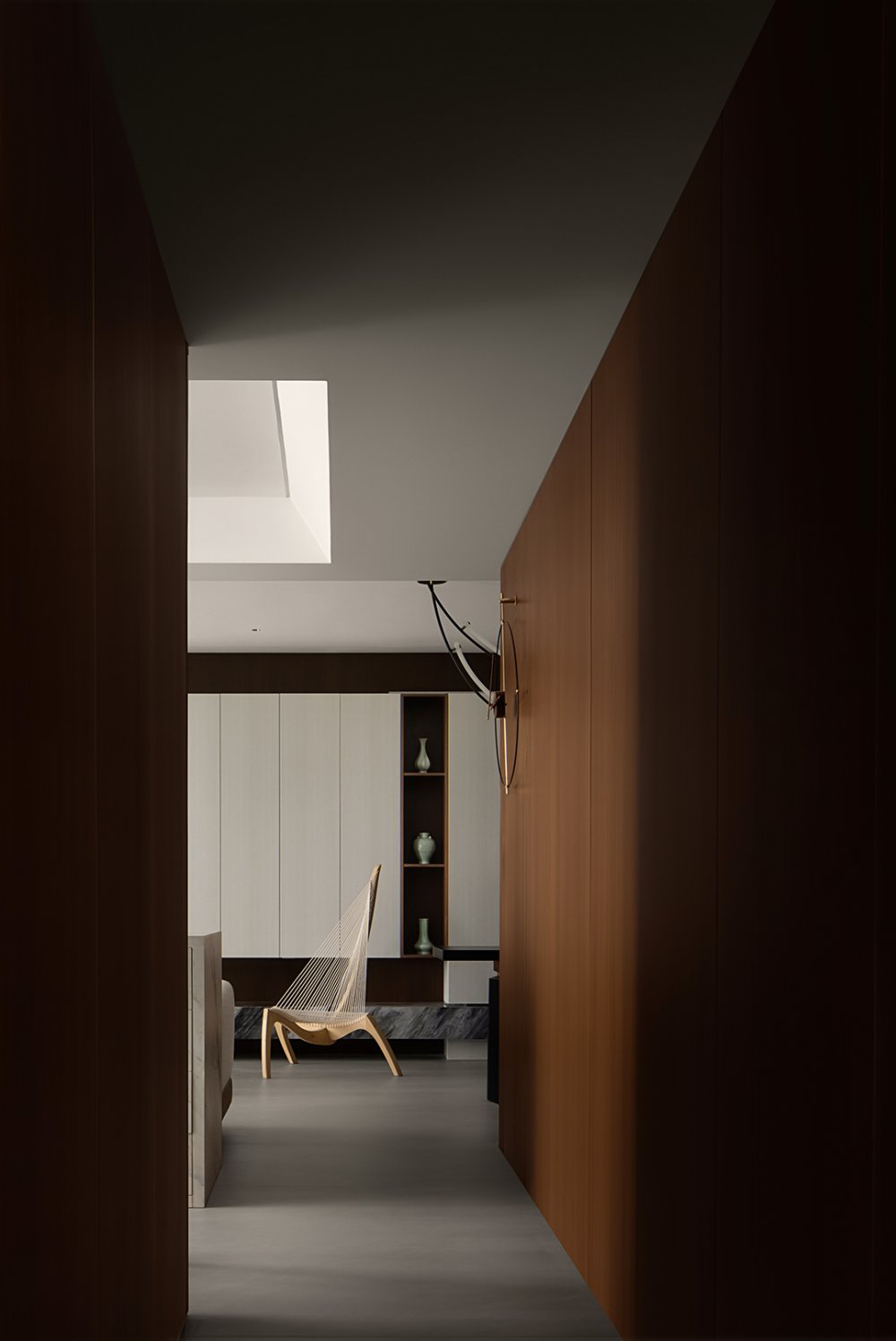 - 木色將墻壁包覆與暖金輪廓營(yíng)造詩(shī)境