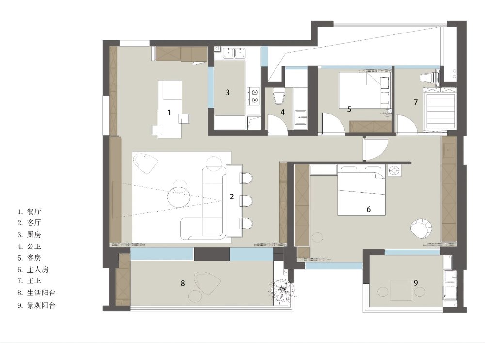 - 客餐廳以布局強(qiáng)調(diào)空間的敘事力