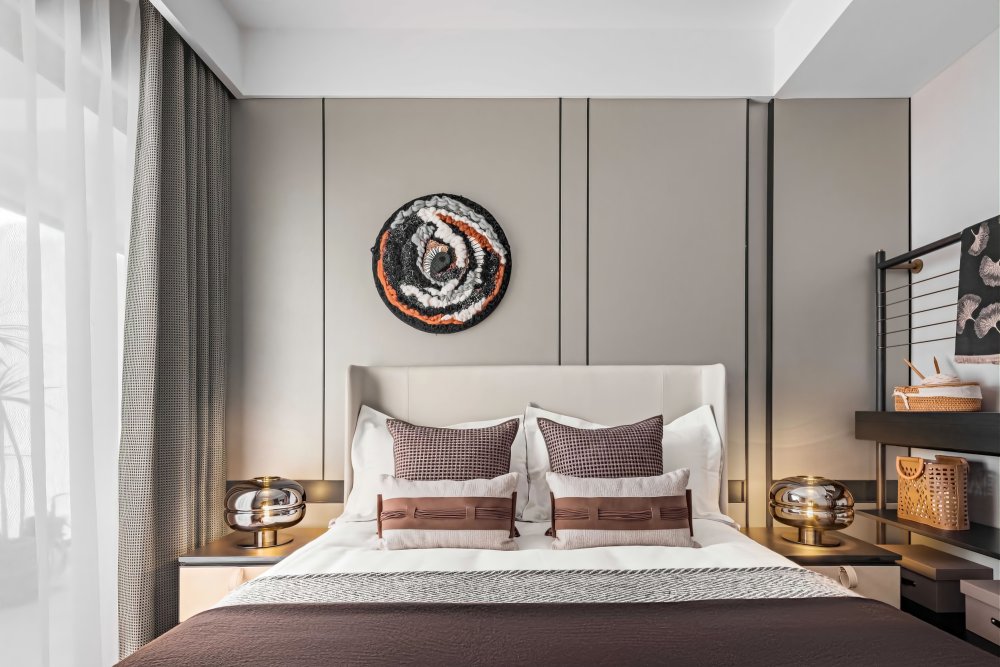長輩房注重色調(diào)的溫馨,以人生的回憶作為設(shè)計(jì)靈感, 墻上放置老人旅行時(shí)拍攝的照片,保證身體舒適的同時(shí)也照顧到心靈的豐裕。