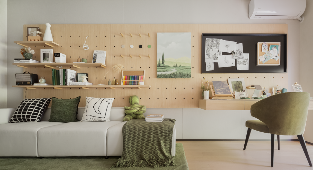 靈活多變的洞洞板,容納居者的所有愛(ài)好和靈感,讓每個(gè)角落皆趣聞橫生。