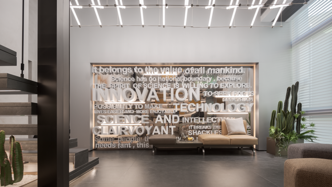 入戶是從外界進(jìn)入到環(huán)境的過(guò)渡區(qū),入口右側(cè)的3D背景墻面迅速抓住人們的眼球,給人耳目一新的驚喜,讓空間增添了十足動(dòng)感,為Robot主題做好鋪墊。