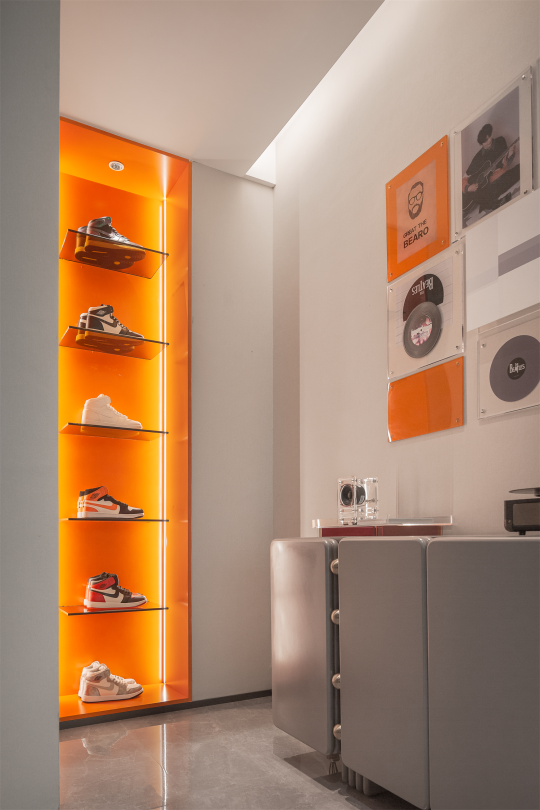 入口玄關(guān)以造型結(jié)合色彩,構(gòu)建強(qiáng)視覺(jué)沖擊力,讓整個(gè)空間氣質(zhì)的潮流感得到升華。