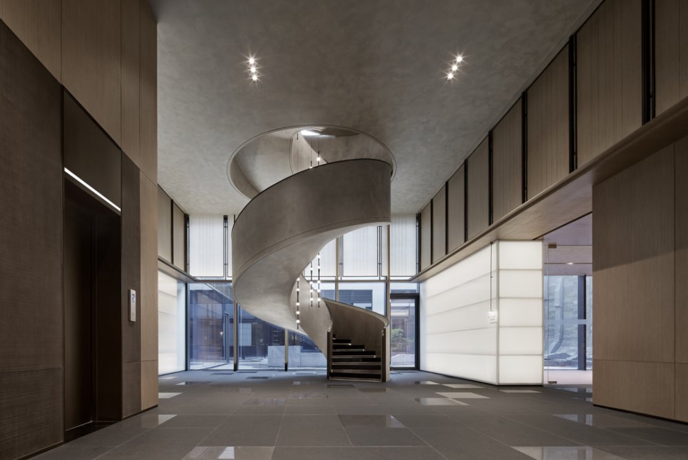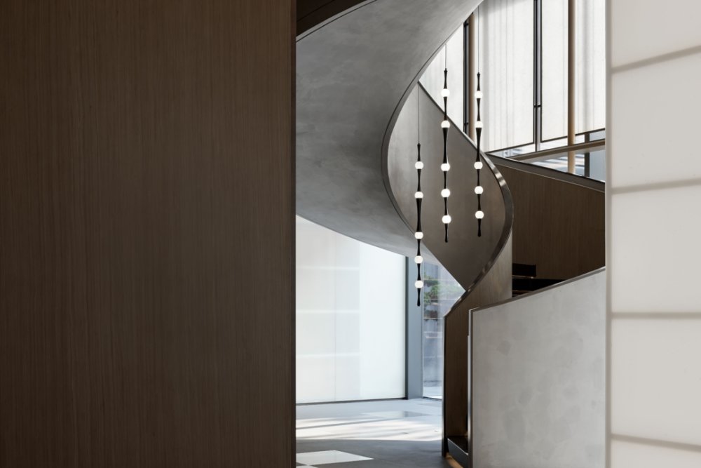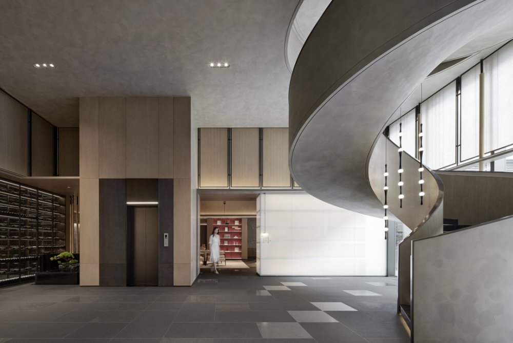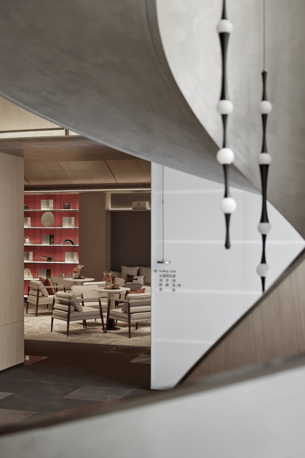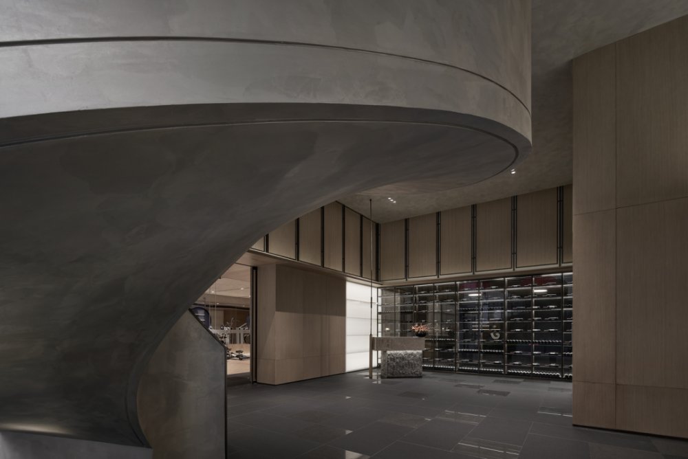 對于層與層之間的連接,樓梯旋轉似一抹飄帶扶搖而上,保持造型與質感的合適距離,就能探索出有溫度有情感的設計,人們在上下穿行時會保有一絲別樣的期待。