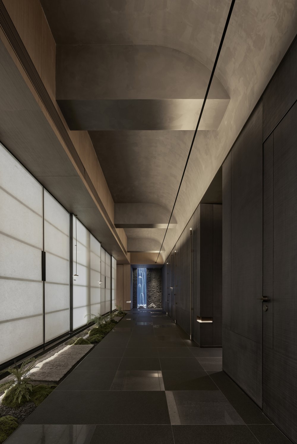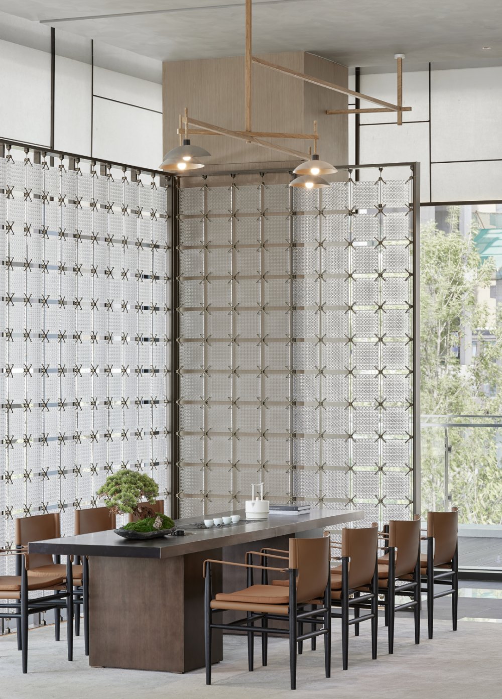 “東臨碣石,以觀滄海”。以中國園林的思巧哲學與隱喻山水為靈感,將庭院之景引至屋檐之下,通過景觀的迂回曲折,創(chuàng)造自然生趣的漫步連廊。