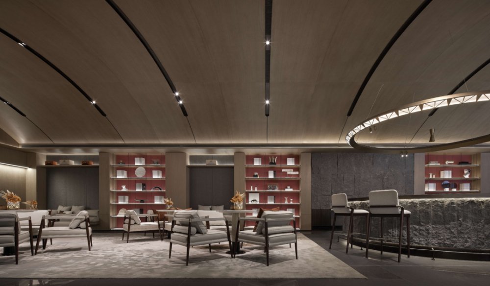 山湖河灣相遇,為歲月;高山流水和合鳴,為知音。古典詩詞中的意境之美,被轉譯為當代的設計語言體驗,形成新的空間樂章。源自山西在地文化與現(xiàn)代東方美學的交融,碰撞出從具象形態(tài)到意境的升華。