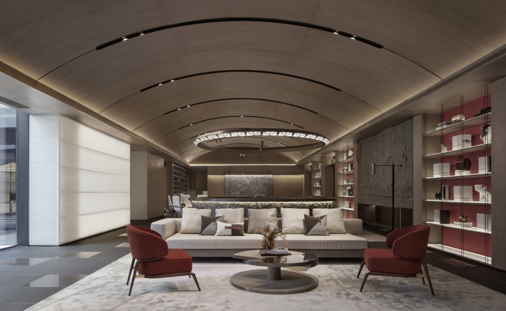 • 室內設計化繁為簡。通過室內與景觀及建筑的聯(lián)動式設計,依托建筑本身特色,以極強序列感的線條語言,打造典雅大氣的空間體驗。自然光影與極簡的空間線條搭配,留白與營造,盡在不言中,共同組織為一幅氣韻生動的藝術畫面。