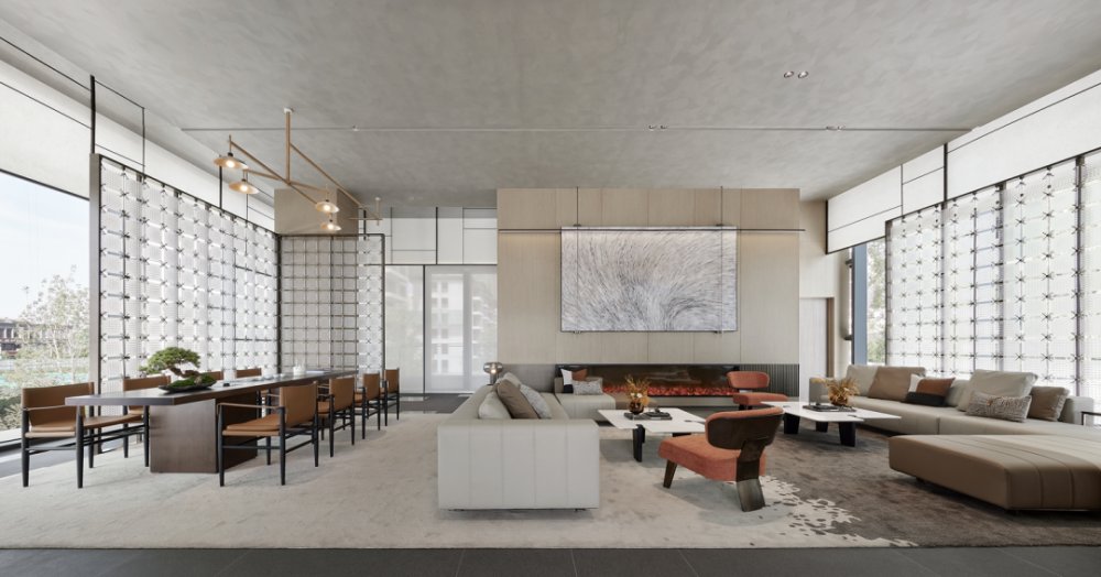 • 本案設計以詩和遠方思考人生,通過自然光影、材質、景觀場景等,借由沉浸式的空間體驗與多樣情境引導,打造出一個理性有序、謙和內斂的現(xiàn)代東方寫意空間,為未來居住于此的人們創(chuàng)造“復得返自然”的游園式體驗,引領格調當代的現(xiàn)代生活美學。