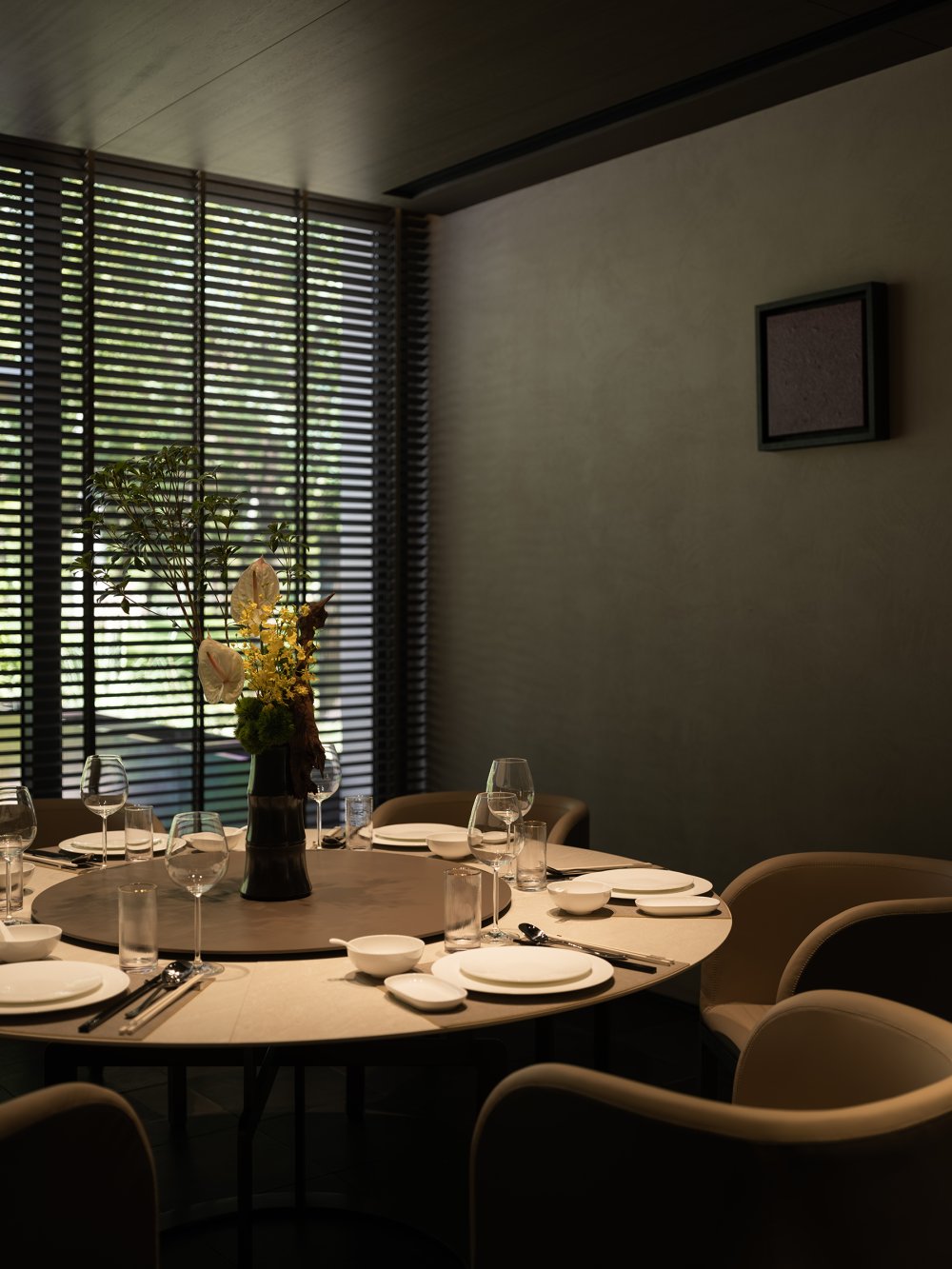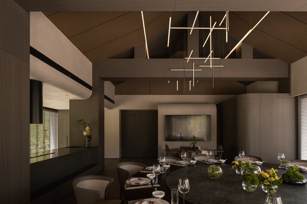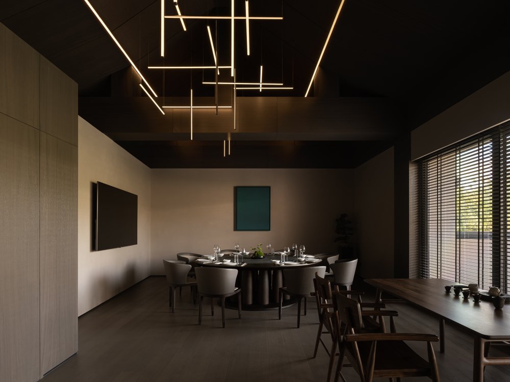 人的天性都是親近自然的,尤其是在城市樊籠里待久了。隱匿城囂的湖畔怎么能缺少談笑喝茶的安靜空間,在二樓包間增加茶室是功能性與場所感的共同考量。場所感往往源于人對自然生活的感受和理解,講人與自然的和諧,沒有什么比一個精心布置的品茶環(huán)境更貼切的了,U+的茶桌延續(xù)古意和儀式,也允許當下東方生活的新式演繹。