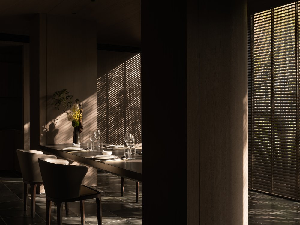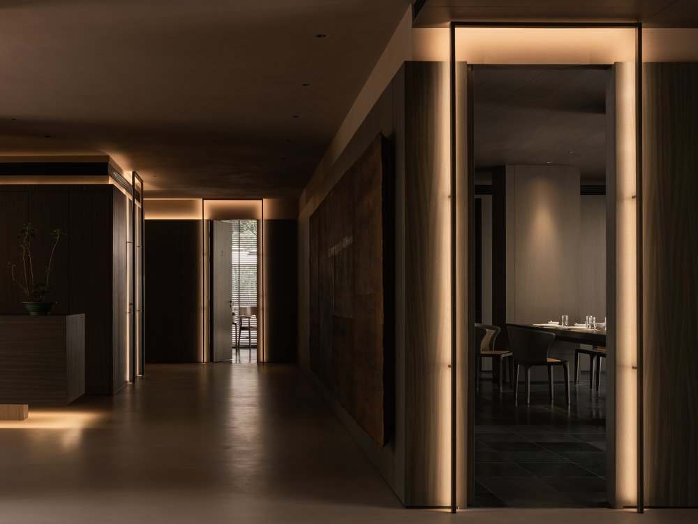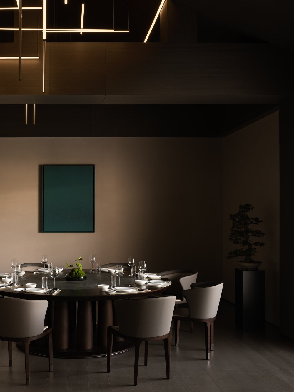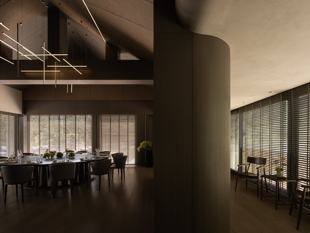 - 繁忙的都市人樂于在喧囂之中尋求寧靜之所,親近泥土和花草,找回生活原本的色彩,而城市中的好空間也在適時回應(yīng)著這一需求,當“江碧鳥逾白,山青花欲然”的意象抽象成設(shè)計中的線條、門框、符號,便是坐落在西安市雁塔區(qū)南湖畔的“九坐1號”。這里既是這座人文古城難得的曲水流觴處,也是新興城市精品綜合體“九坐”的一部分,設(shè)計師將對美好生活方式的構(gòu)想傾注于這家粵菜餐廳,將自然邀入室內(nèi),讓流水、綠植、光影成為第一位顧客,一切始于自然又歸于由此而起的詩意,在品質(zhì)和細節(jié)的流動中呈現(xiàn)一個情緒不斷變奏的愜意之所。