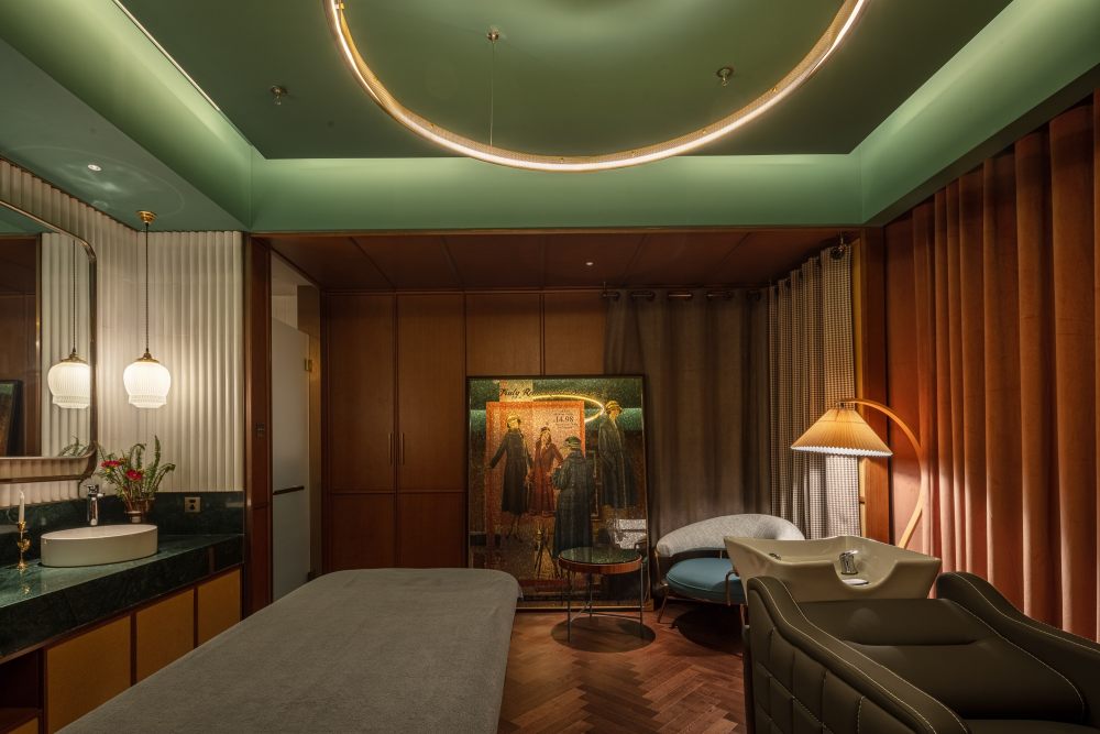 本次項(xiàng)目共有三間SPA房,設(shè)計(jì)師為每間房設(shè)置了一個(gè)主題——花園、植物園和衣帽間。